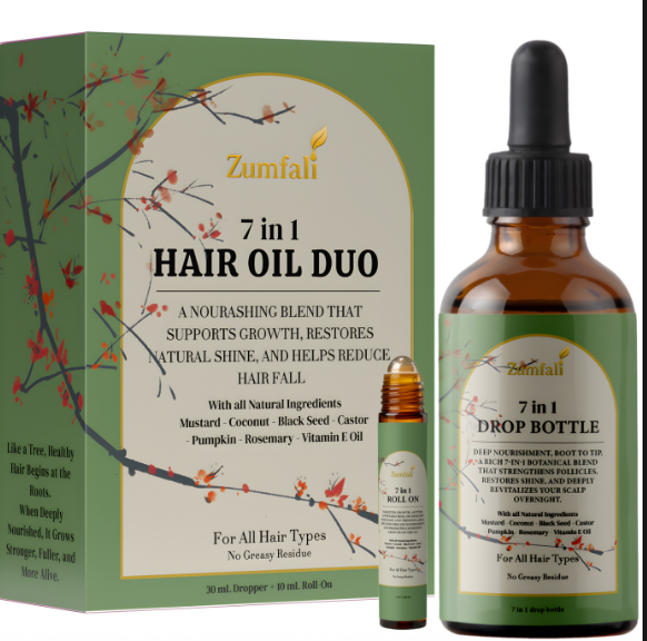 Zumfali Hair Oil – Nourishing 30ml + 10ml Bundle combines carefully selected natural oils to deeply nourish and strengthen your hair. This expert formulation supports scalp health, reduces hair breakage, and enhances shine, leaving your hair visibly healthier with regular use. Perfect for all hair types, this bundle offers a convenient way to maintain your hair’s vitality and promote long-lasting strength.